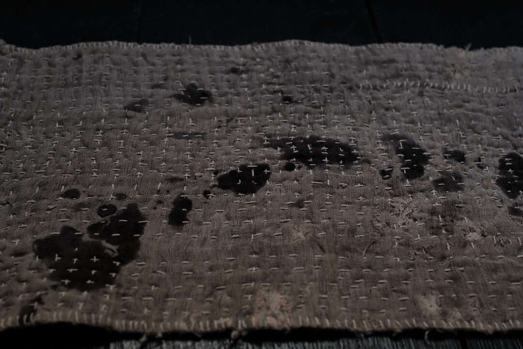 Черные пята на полотне — следы вываренных чернильных яблок (наросты на дубовых листьев из которых ранее изготавливали чернила).