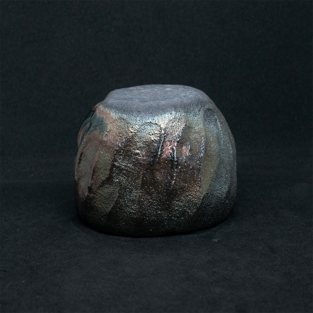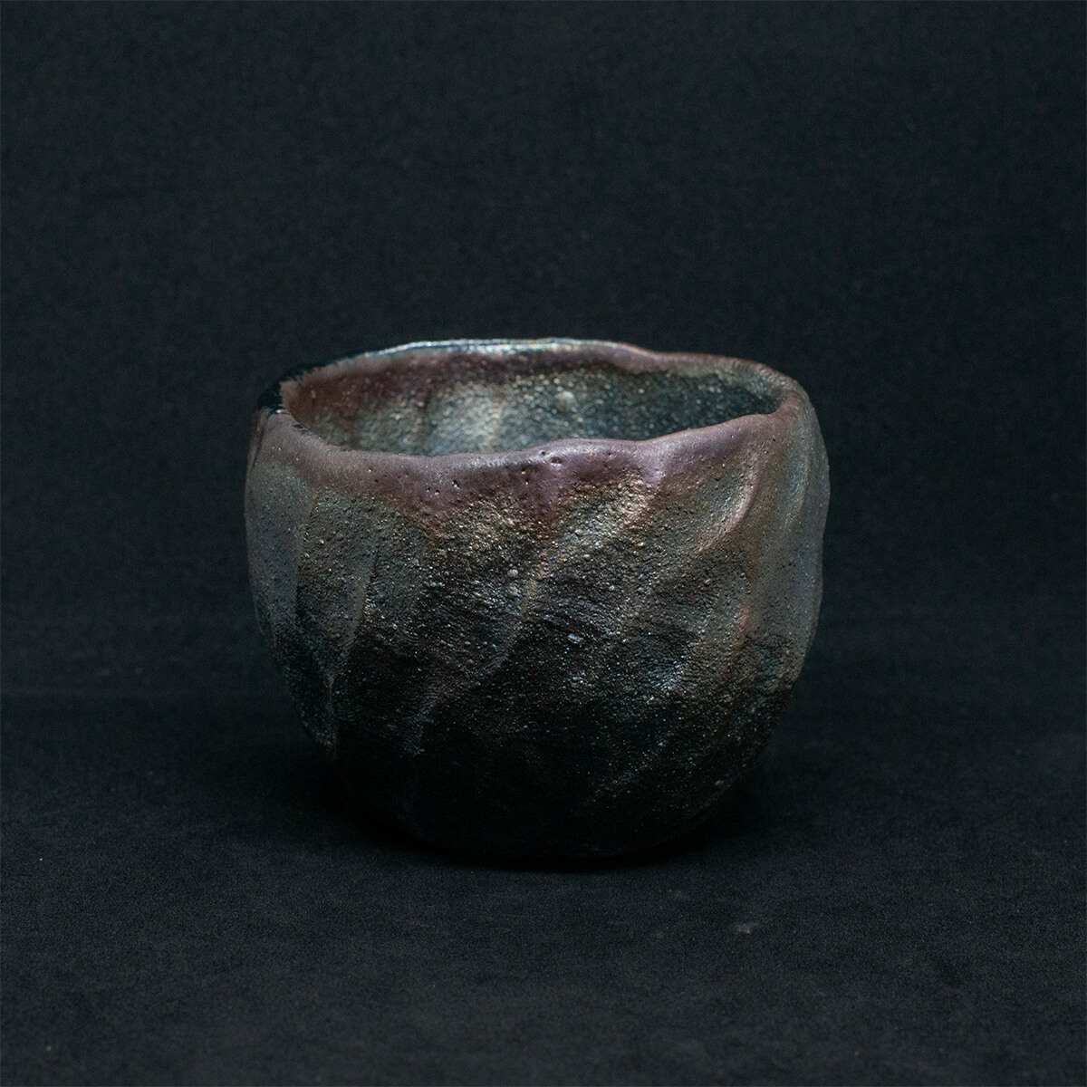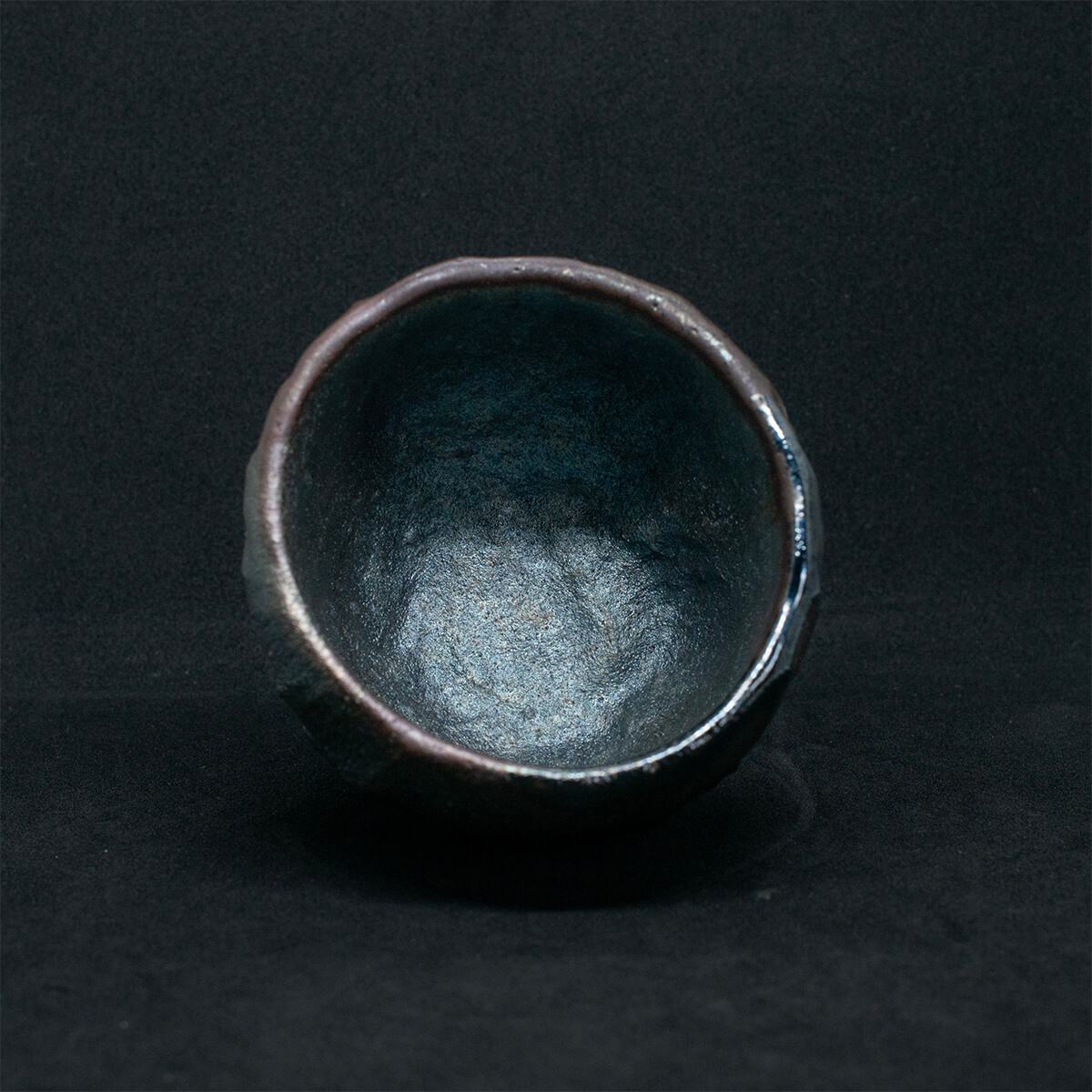Тяжеловесная чашка дровяного обжига. Толстые стенки, металлик глазури.