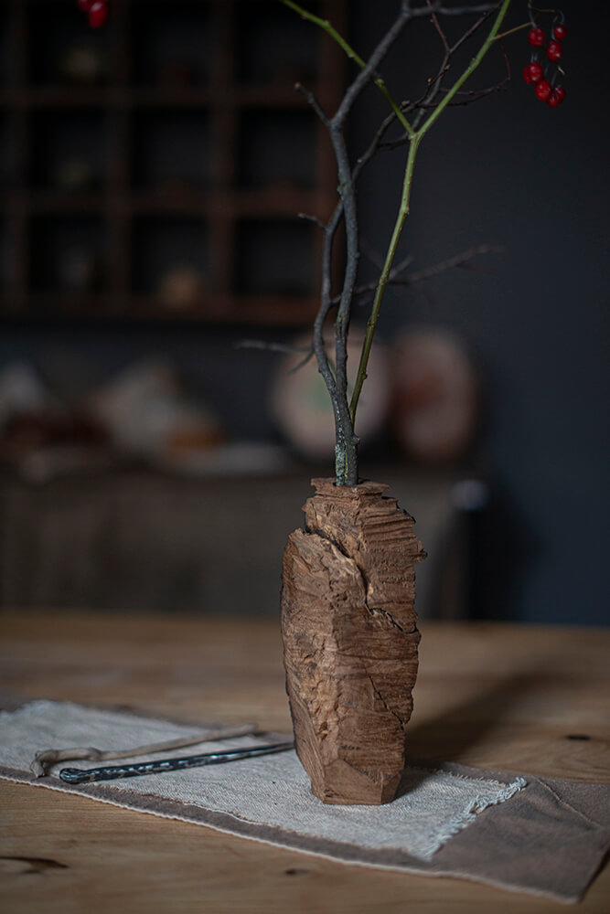 Ваза из корня дуба от мастерской «Письма Лесу». Совершенная, живая, природная форма, идеально подчеркнутая Мастером. Ваза для созерцания.