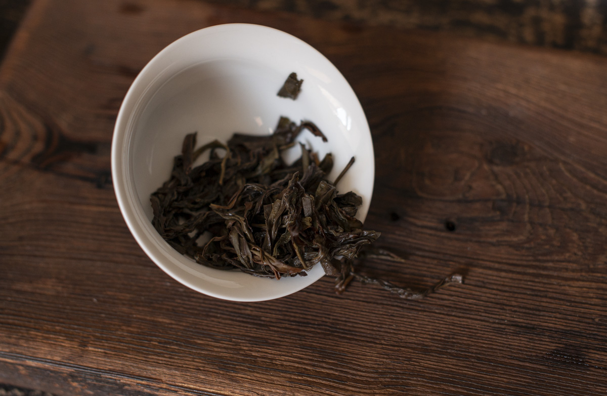 Туго скрученные чаинки сизого цвета. При первых проливах цвет настоя светлый, с заметным персиковым оттенком, который может служить указателем на большой возраст кустов.